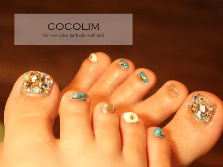 韓国で大人気のデザイン。専用グルーを使用したスワロフスキーアート