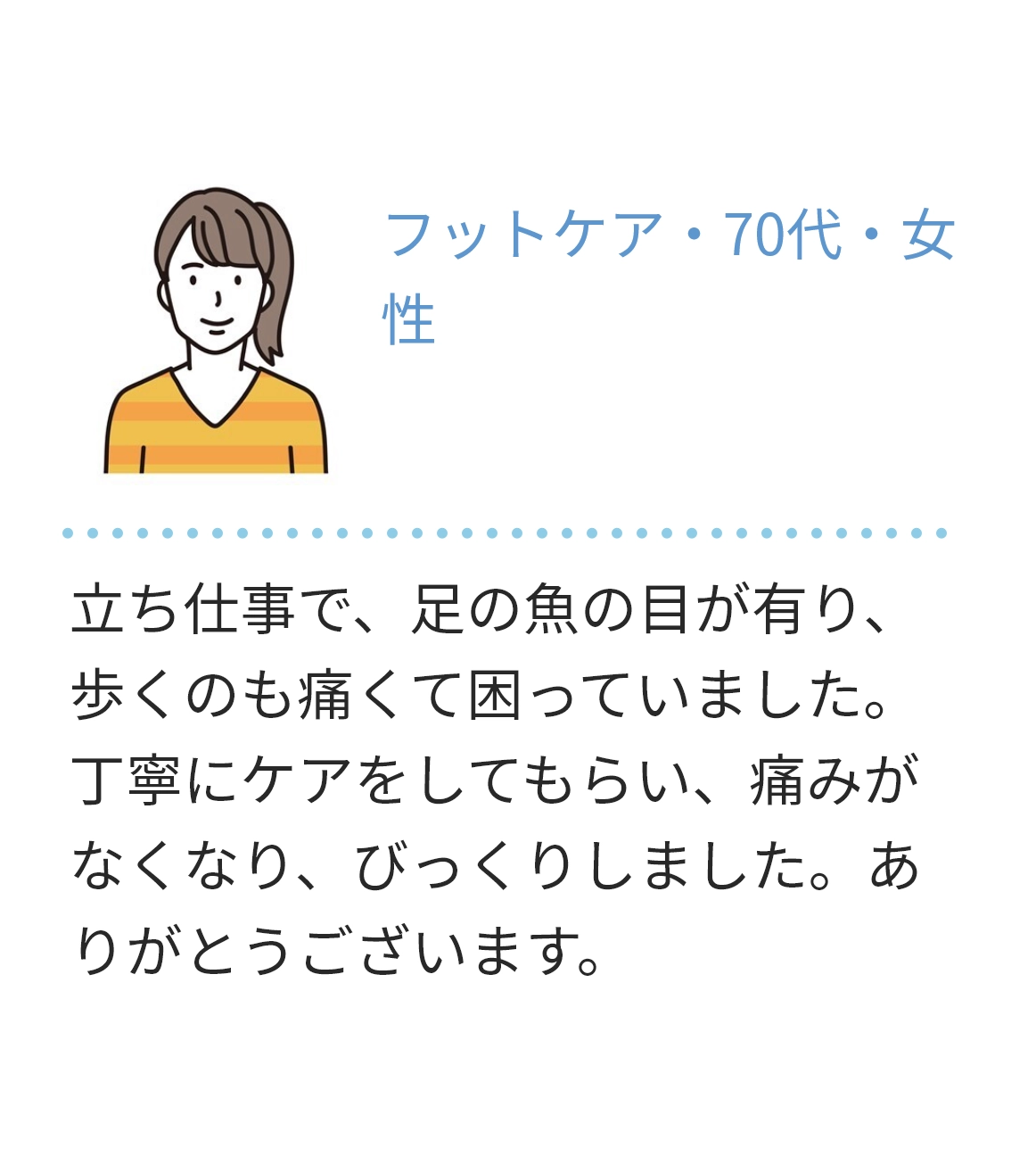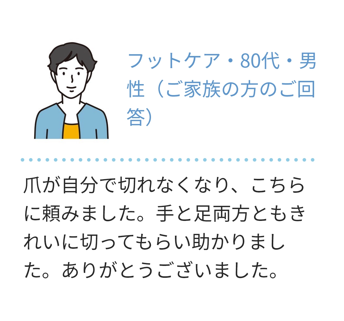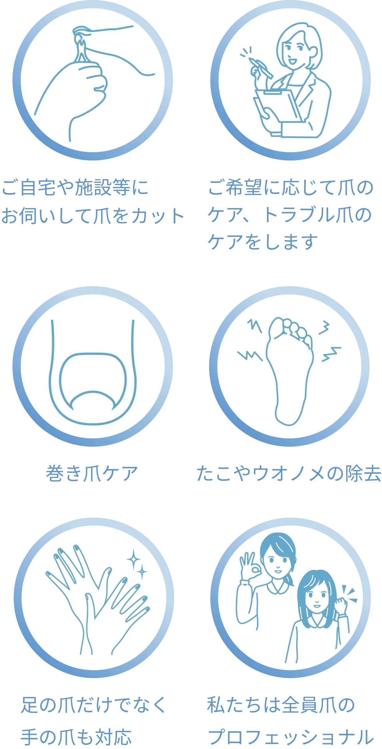 こんな症状でお悩みではありませんか?爪の訪問ケアでひとりひとりに合わせて対応します。
